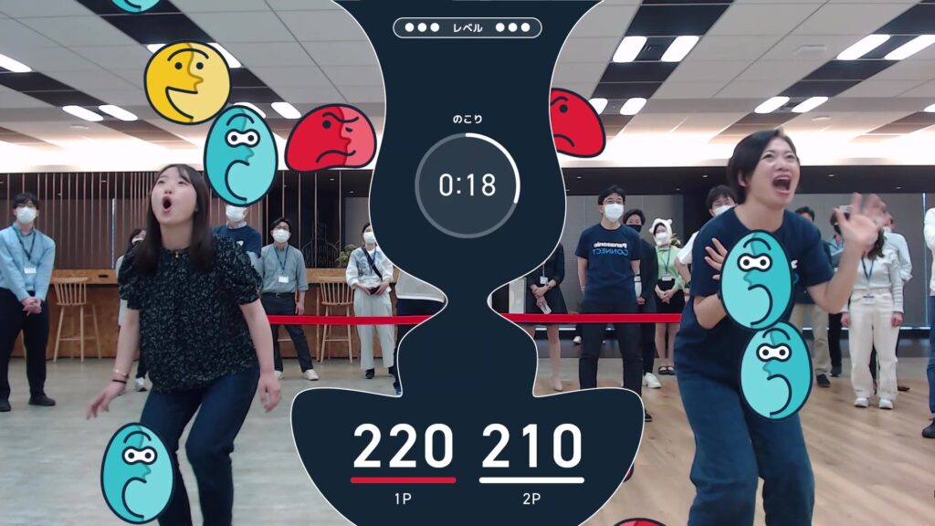 表示されたピクトグラムに合わせてポーズを取ると、骨格推定技術があなたのポーズを判定します。