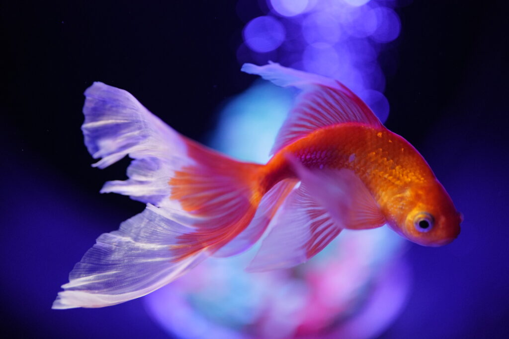 五感を刺激する幻想空間で、金魚たちが優雅に舞う。