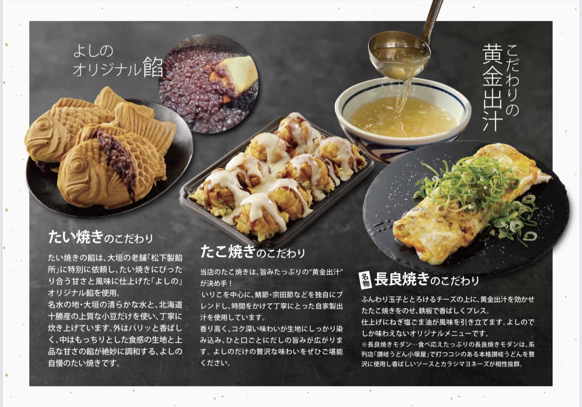 讃岐うどんで人気の大垣の名店『讃岐釜揚げうどん小塚屋』系列が手がけるこのお店では、名物「黄金出汁」を贅沢に使ったたこ焼きや、素材と餡にとことんこだわったたい焼きなど、“和のおやつ”が勢ぞろい。