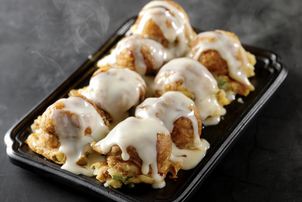 さらに、他にはない味わいを演出するのが、お店特製のカラシマヨネーズ。やさしい辛味とまろやかさが絶妙に調和し、たこ焼きの美味しさを引き立てる。