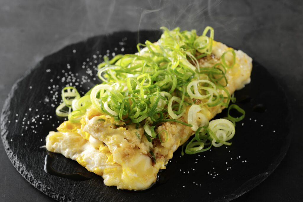 「ほかでは絶対に出せない味を届けたい」という店主の思いから生まれた、よしのオリジナルの看板メニュー「長良焼き」。ふんわり焼き上げた卵と、とろけるチーズの上に、黄金出汁をしっかり効かせたたこ焼きを贅沢にのせ、鉄板で香ばしくプレスする。仕上げにごま油と塩をひとふりすれば、香り立つ風味が食欲をかき立てる。この組み合わせは、一度食べたら忘れられない味わいだ。