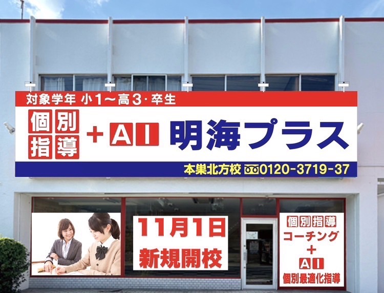 📍個別指導+AI 明海プラス 本巣北方校【住所】岐阜県本巣市上真桑2258-416【電話】0120-3719-37【受付時間 】13:30~21:00(日曜・祝日、毎月29日~31日を除く)【駐車場】有※本巣北方校での個別説明会をご希望の方は上記番号までお問い合わせください。