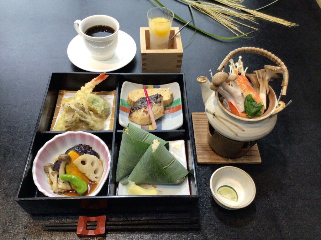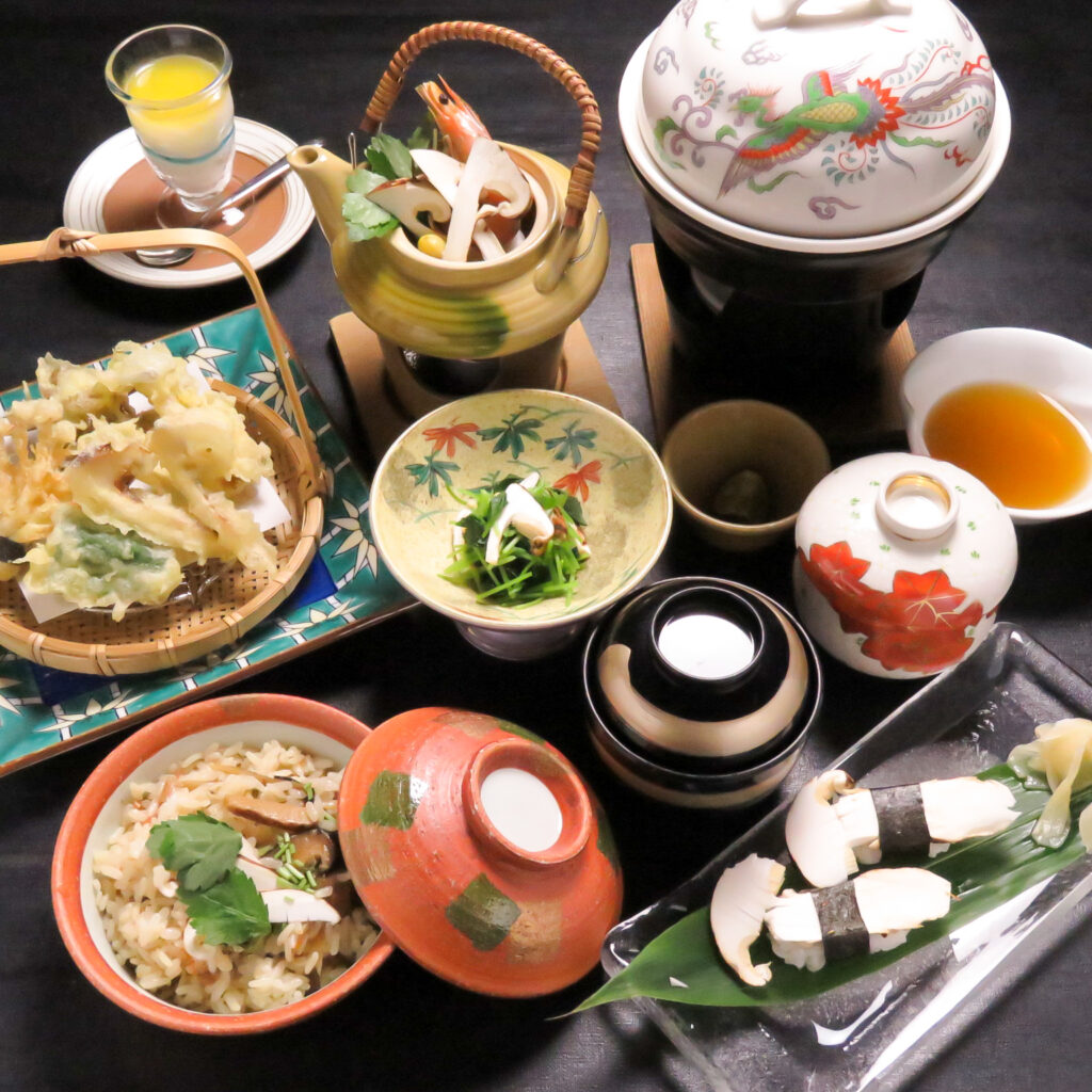 天ぷら/焼き物/旬の野菜の煮びたし/キノコの土瓶蒸し/笹寿司/デザート/ドリンク