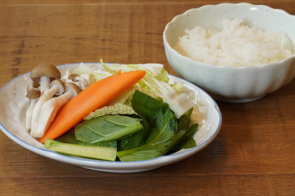 基本的にお野菜はお好みでOK。旬の野菜を選ぶと、自然と身体にもやさしい一杯に仕上がります。