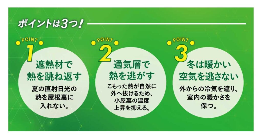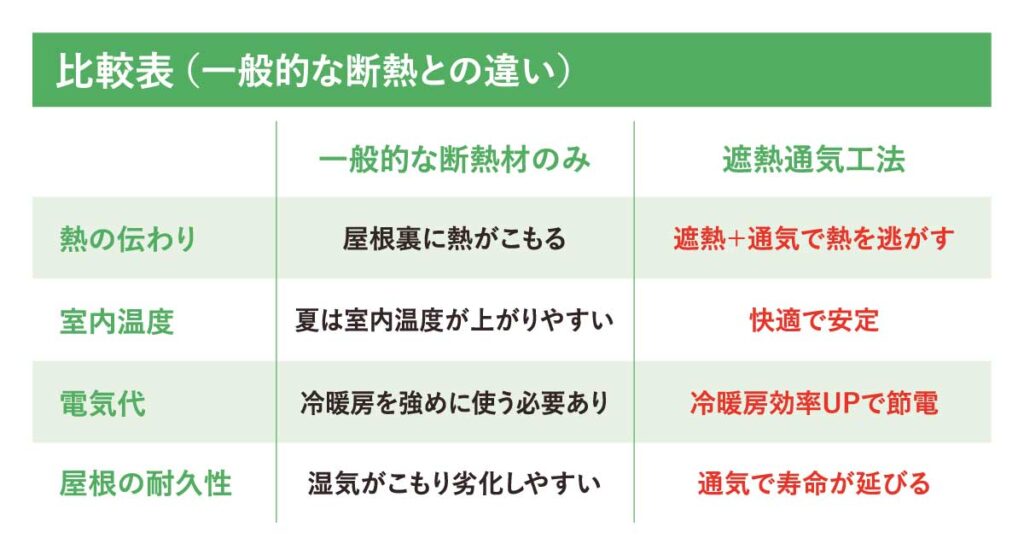 つまり、夏の暑さも冬の寒さも、“屋根が熱をため込み、逃がし、出入りしてしまう構造”が原因。どれだけ冷暖房を使っても、屋根が問題を抱えていれば改善されにくいのです。