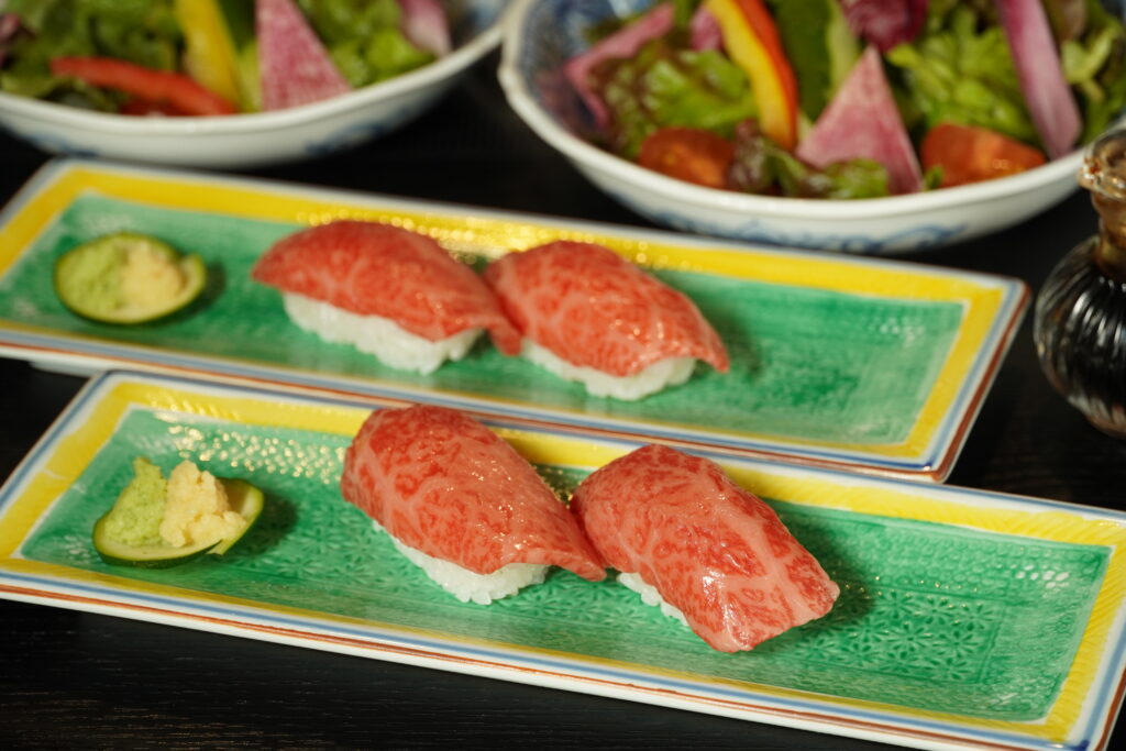 香ばしく炙った銘柄牛と、相性ぴったりな酢飯との組み合わせ。お肉の甘みが口いっぱいに広がる、人気の一貫です。