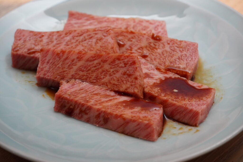 きめ細かなサシが入った特上ロースは、お祝いの日の主役級。口に入れた瞬間、やわらかくほどける食感と上品な脂の甘みが広がります。「今日は特別だね」と自然に言葉がこぼれる一皿です。