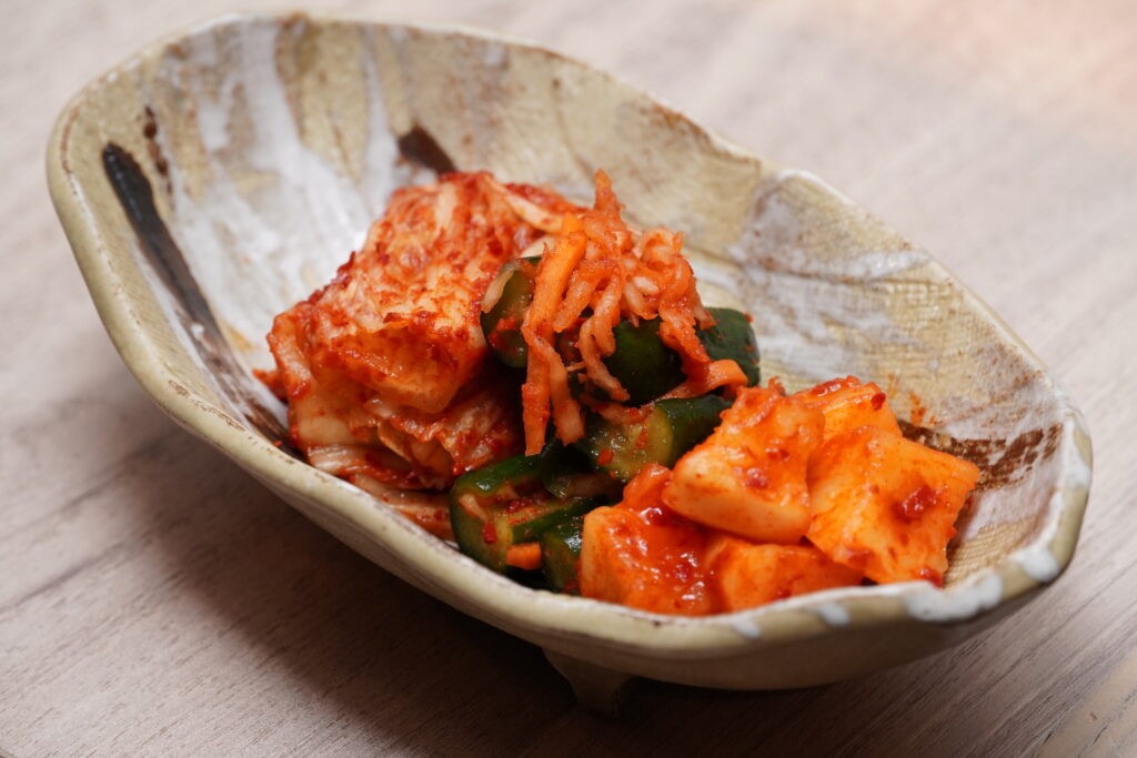 食事の合間に嬉しいキムチ盛合せ。辛さだけでなく、旨みとコクのバランスが良く、お肉の美味しさを引き立てます。箸休めとしても、なくてはならない存在です。