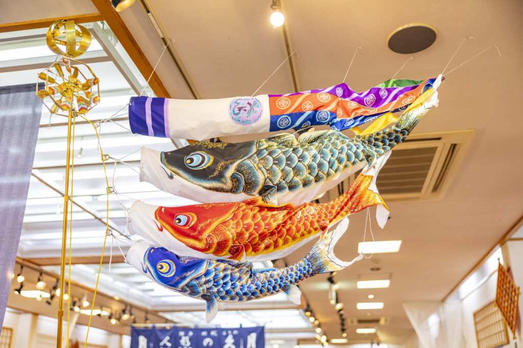 外に掲げる本格的なこいのぼりはもちろん、室内用のコンパクトタイプや「こいつるし」もラインナップ。