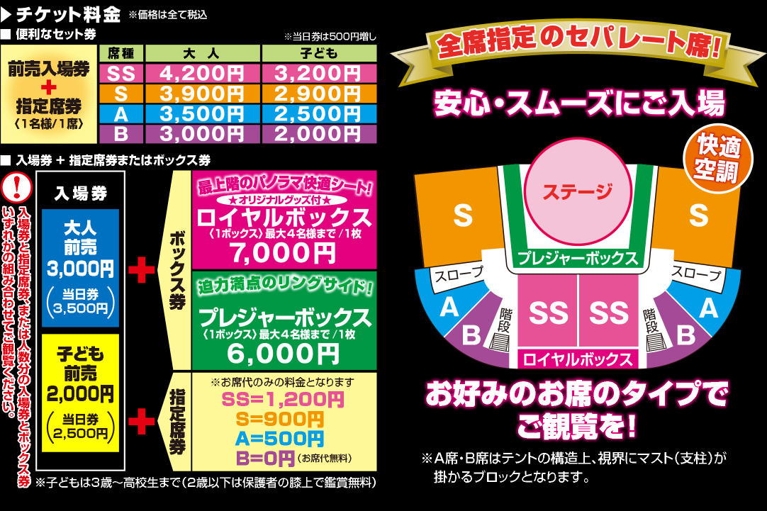 ※全席指定となっておりますので、入場券だけではご入場いただけません。必ず席をご購入の上お楽しみください!