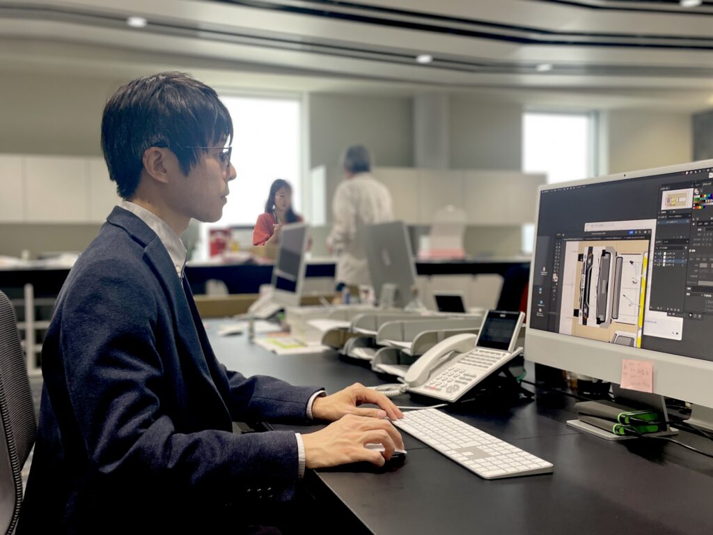 前職でもデザイン業務に携わっていましたが、より専門性の高い環境でスキルを磨きたいという想いから転職を考えるようになりました。同業界にいたからこそ、ヤマニパッケージの強みは以前から認識しており、特に「既製品」サービスは業界内でも高い評価を得ている点に魅力を感じていました。外から関心を持つ立場ではなく、今度はその成長を内側から支えたい!そう思い、入社を決めました。