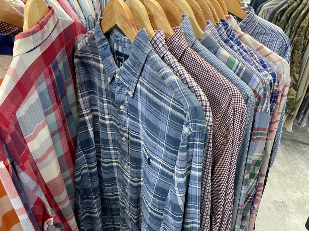 店内には、Ralph Lauren のシャツラックや、Patagonia のチェック柄シャツなども並び、見応えのあるラインナップになっています。
