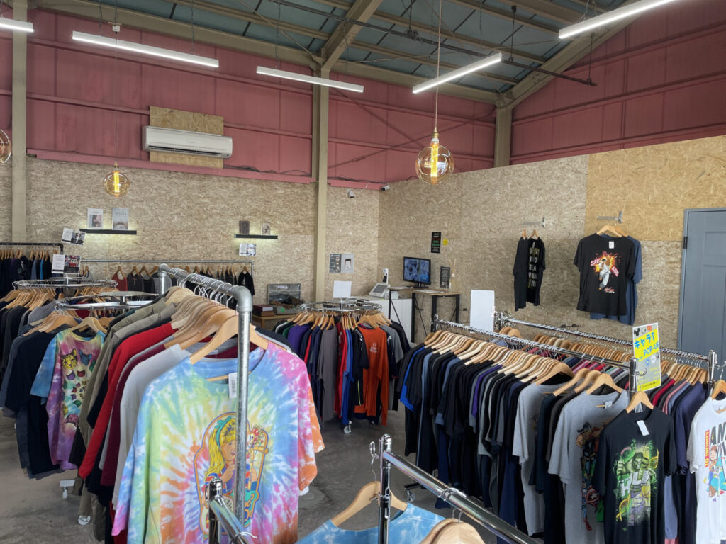 無人ながら、レアTがさりげなく並ぶ少し不思議で魅力的な空間。店内にはヴィンテージTシャツから普段使いしやすいアイテムまで揃い、自然と“ちょうどいい一枚”が見つかります。
