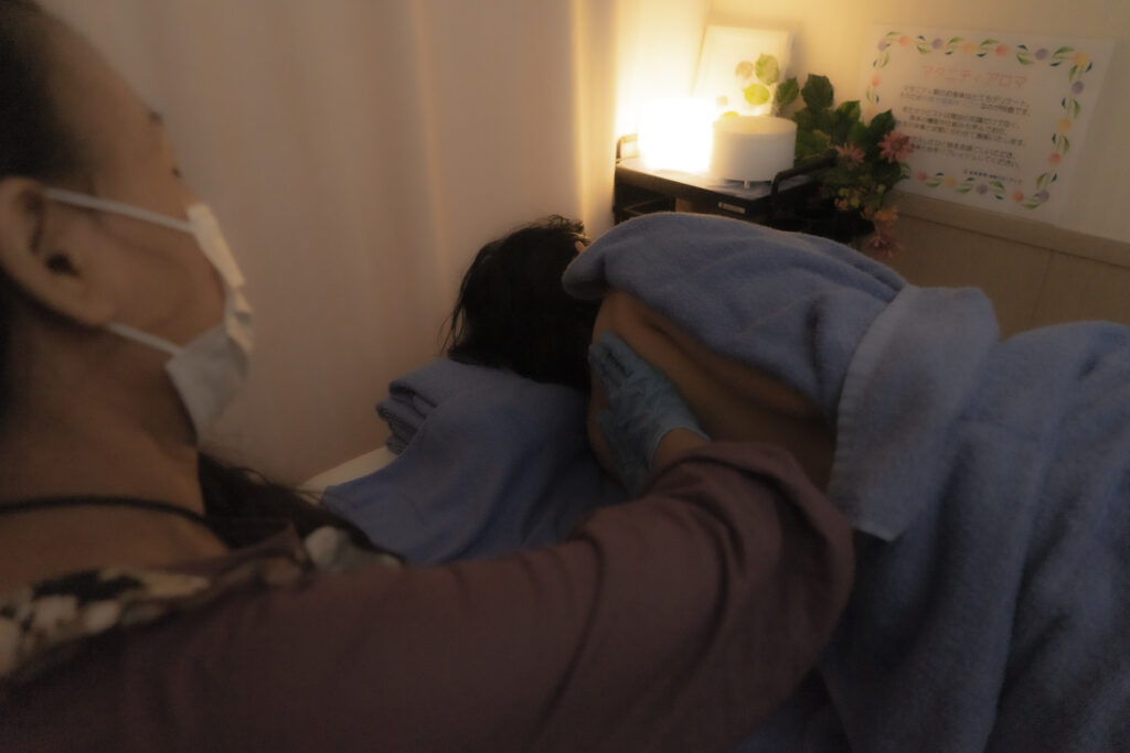 授乳の合間には、プロの手を借りてしっかり休む。そんな「頑張りすぎない」リズムが、岩砂マタニティ流です。