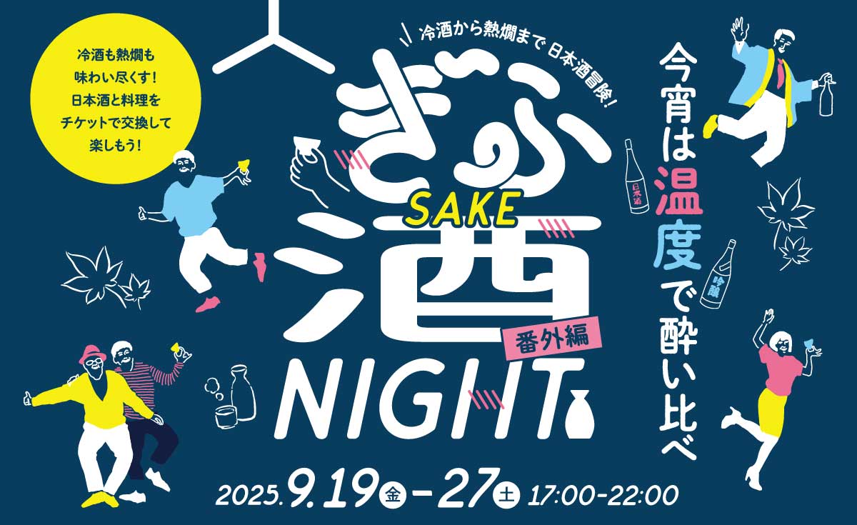 【岐阜市】〈9/19(金)〜9/27(土)開催〉熱燗・冷酒を飲み比べできる特別な9日間。「ぎふ酒NIGHT 番外編」がアクティブGにて開催!